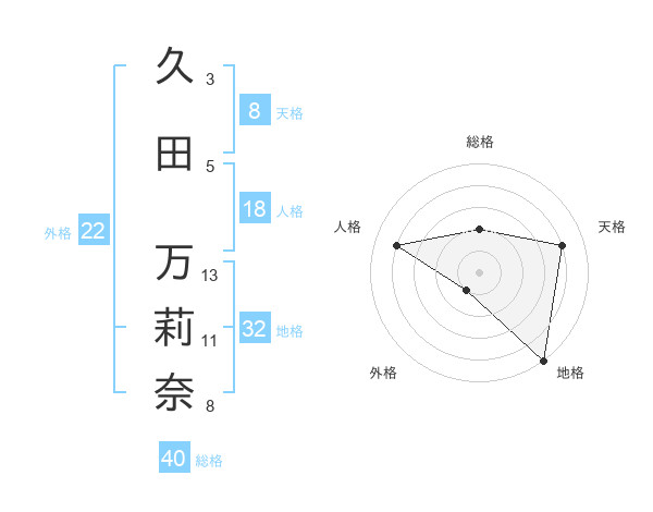 久田 万莉奈さんを姓名の画数から五運を鑑定