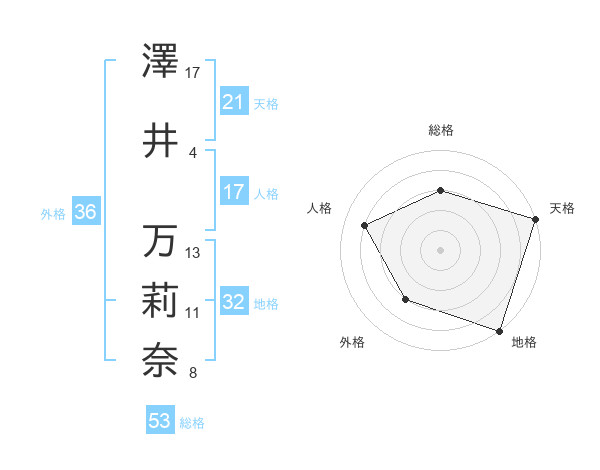 澤井 万莉奈さんを姓名の画数から五運を鑑定