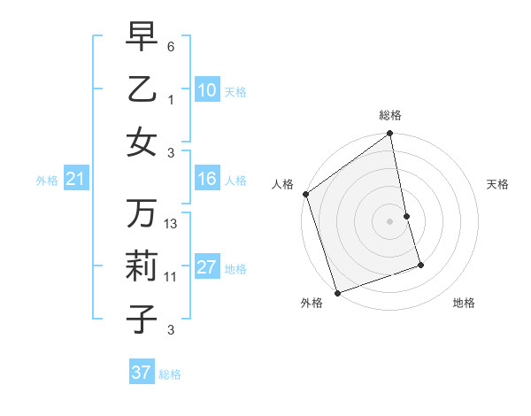早乙女 万莉子さんを姓名の画数から五運を鑑定