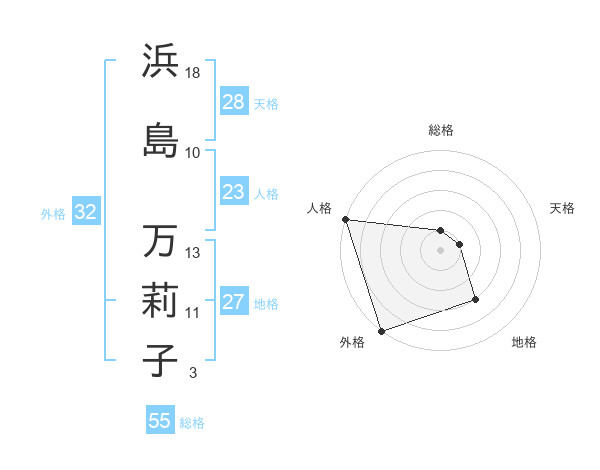 浜島 万莉子さんを姓名の画数から五運を鑑定