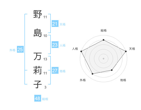 野島 万莉子さんを姓名の画数から五運を鑑定