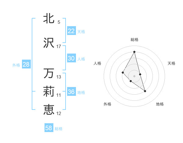 北沢 万莉恵さんの総格は58画の4点!