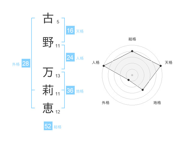 古野 万莉恵さんの天格は16画の5点!