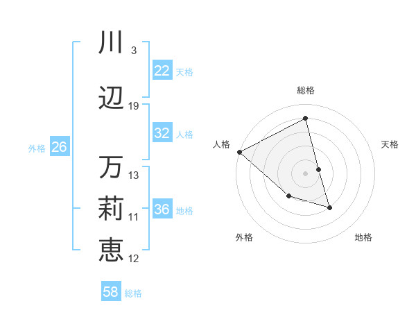 川辺 万莉恵さんを姓名の画数から五運を鑑定