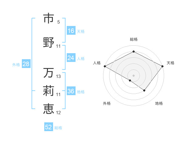 市野 万莉恵さんを姓名の画数から五運を鑑定