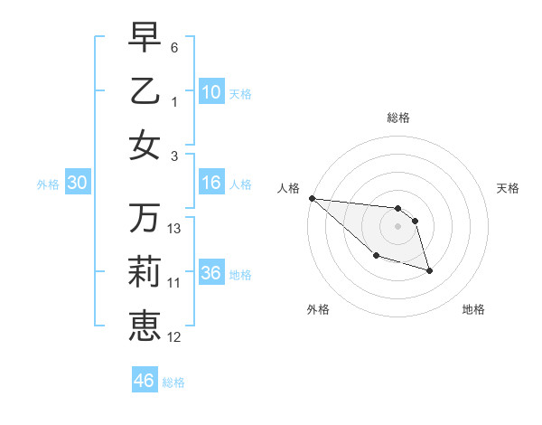 早乙女 万莉恵さんの総格は46画の1点!