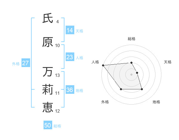 氏原 万莉恵さんの総格は50画の2点!