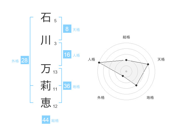 石川 万莉恵さんを姓名の画数から五運を鑑定