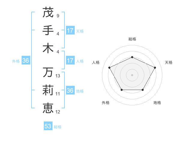 茂手木 万莉恵さんを姓名の画数から五運を鑑定