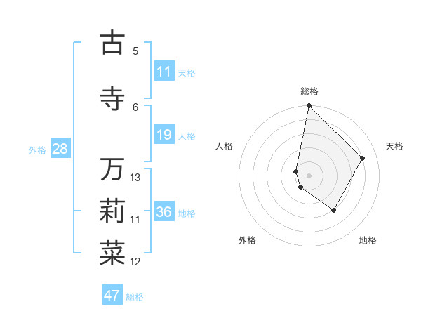 古寺 万莉菜さんを姓名の画数から五運を鑑定