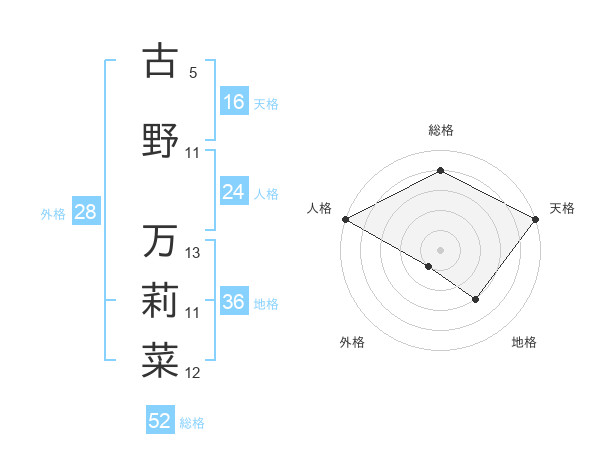 古野 万莉菜さんの総格は52画の4点!