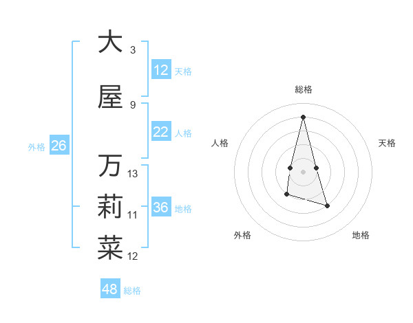 大屋 万莉菜さんを姓名の画数から五運を鑑定