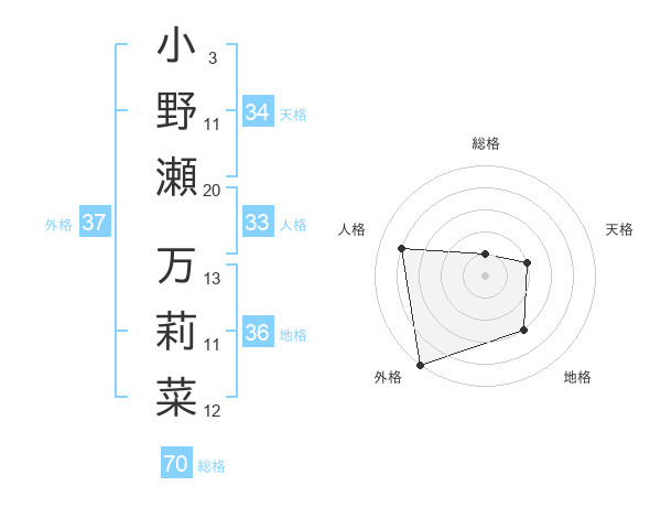 小野瀬 万莉菜さんの総格は70画の1点!