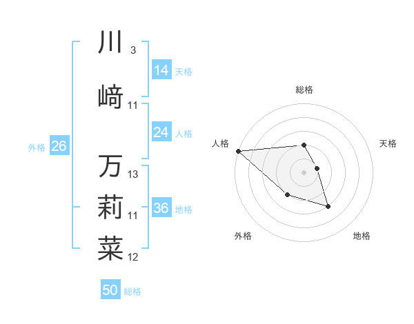 川﨑 万莉菜さんを姓名の画数から五運を鑑定