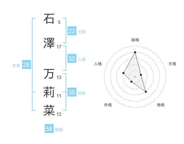 石澤 万莉菜さんを姓名の画数から五運を鑑定