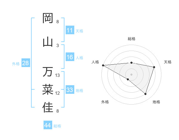 岡山 万菜佳さんの総格は44画の2点!
