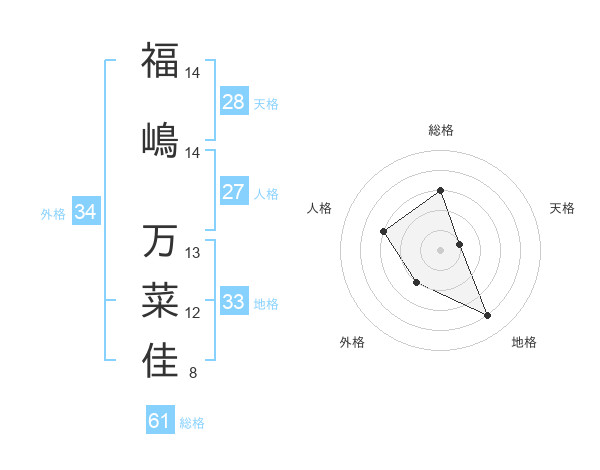 福嶋 万菜佳さんを姓名の画数から五運を鑑定