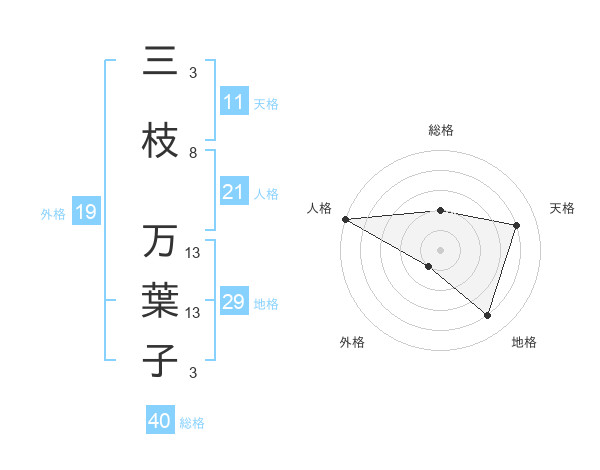 三枝 万葉子さんを姓名の画数から五運を鑑定