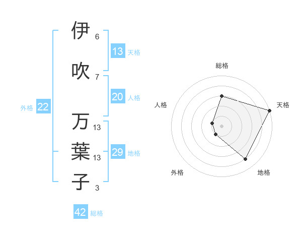 伊吹 万葉子さんを姓名の画数から五運を鑑定