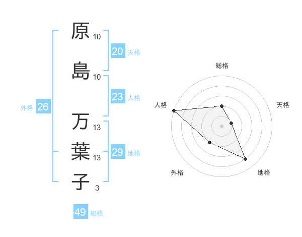 原島 万葉子さんの地格は29画の4点!