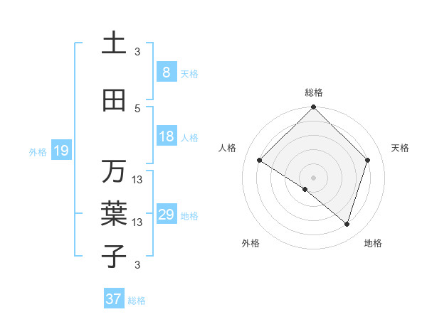 土田 万葉子さんを姓名の画数から五運を鑑定