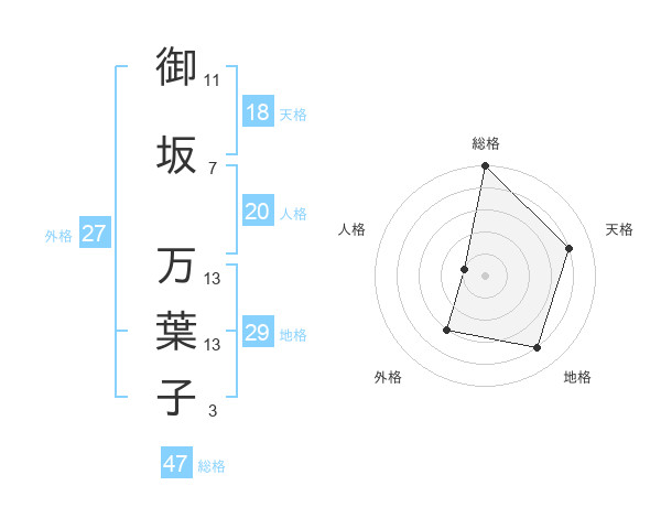 御坂 万葉子さんを姓名の画数から五運を鑑定