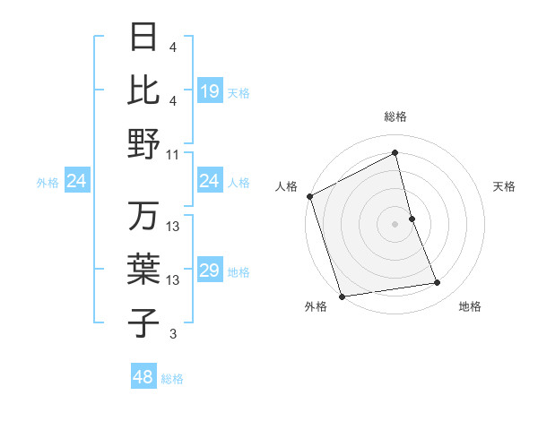 日比野 万葉子さんの外格は24画の5点!
