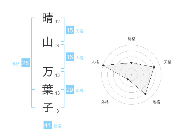 晴山 万葉子さんを姓名の画数から五運を鑑定