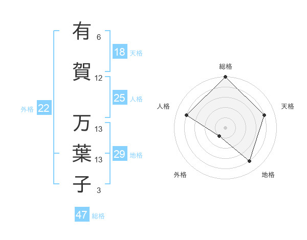 有賀 万葉子さんを姓名の画数から五運を鑑定