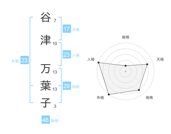 谷津 万葉子さんを姓名の画数から五運を鑑定