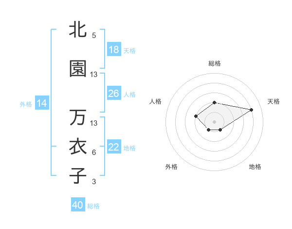 北園 万衣子さんの総格は40画の2点!