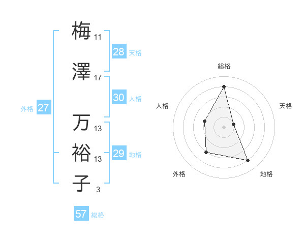 梅澤 万裕子さんの総格は57画の4点!