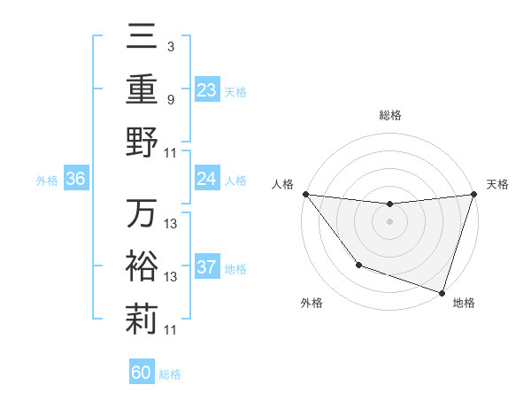 三重野 万裕莉さんを姓名の画数から五運を鑑定