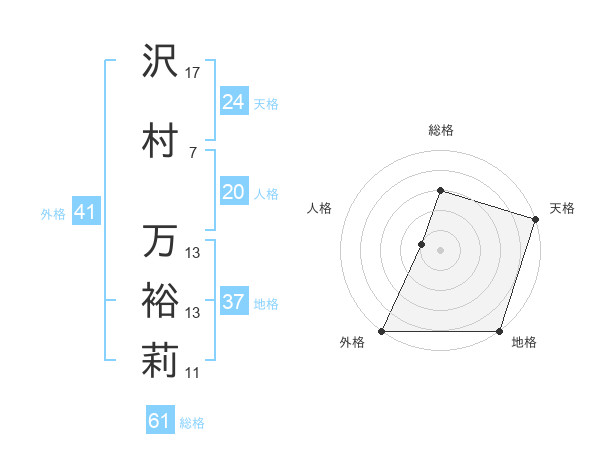 沢村 万裕莉さんを姓名の画数から五運を鑑定