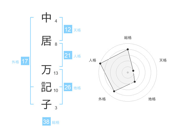 中居 万記子さんの総格は38画の4点!