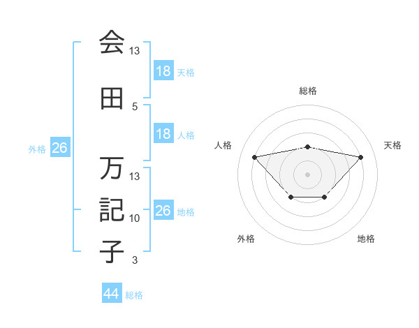 会田 万記子さんの総格は44画の2点!