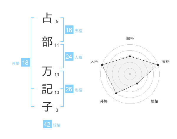 占部 万記子さんの天格は16画の5点!