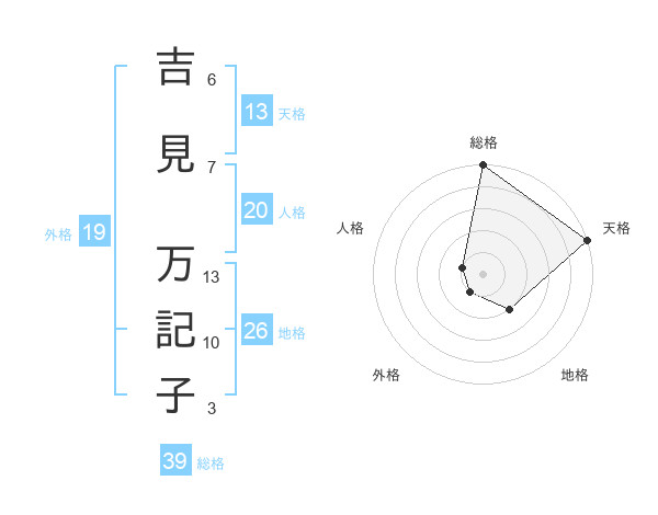 吉見 万記子さんの総格は39画の5点!