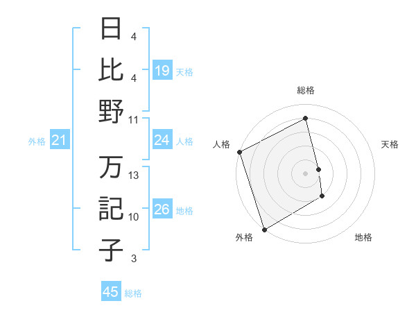 日比野 万記子さんを姓名の画数から五運を鑑定