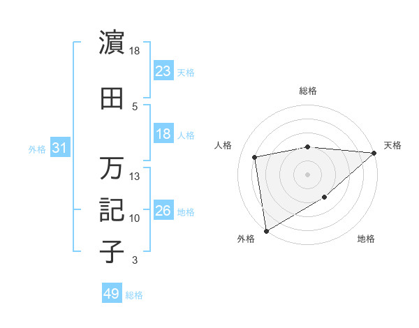 濵田 万記子さんの天格は23画の5点!