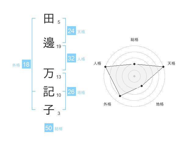 田邊 万記子さんを姓名の画数から五運を鑑定
