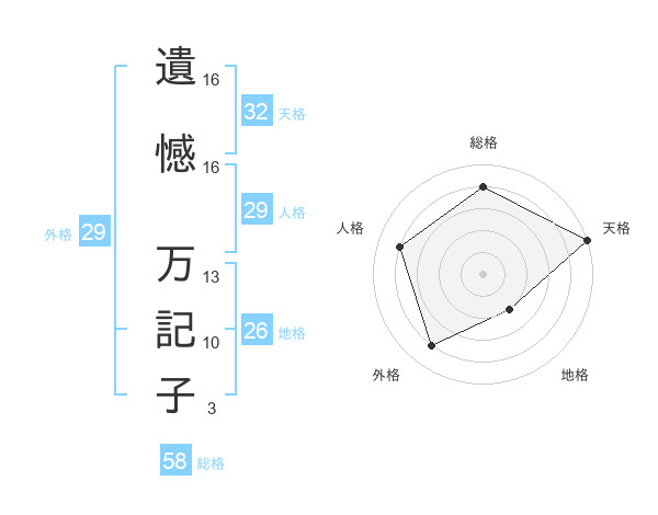 遺憾 万記子さんの総格は58画の4点!