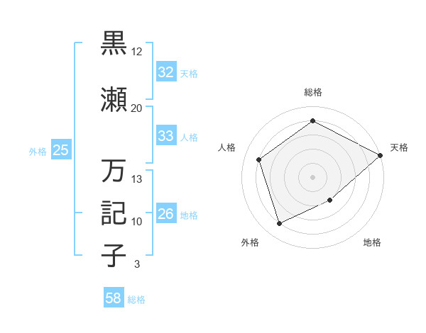黒瀬 万記子さんを姓名の画数から五運を鑑定