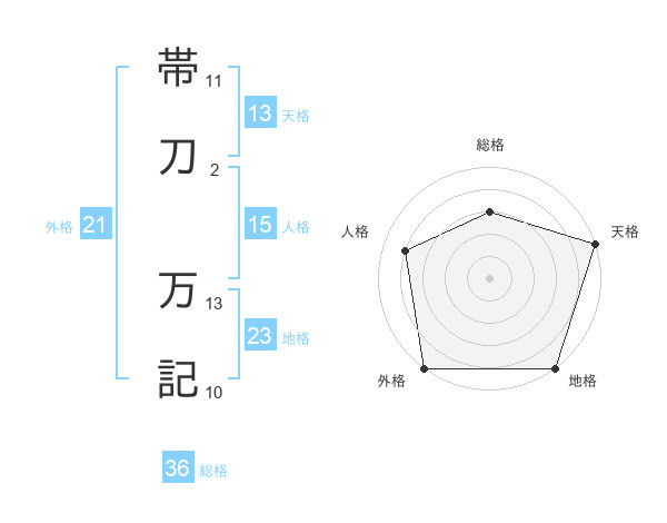 帯刀 万記さんを姓名の画数から五運を鑑定