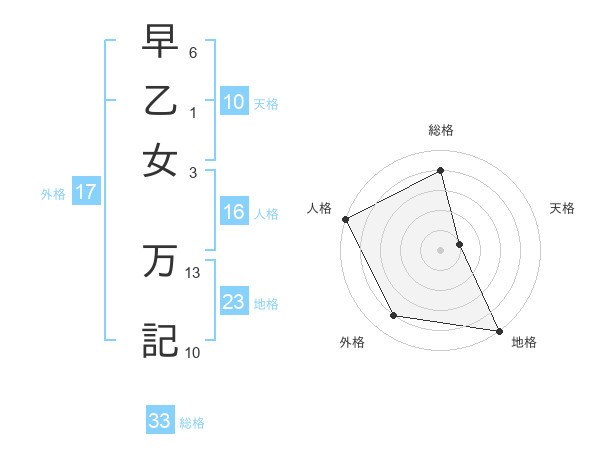 早乙女 万記さんを姓名の画数から五運を鑑定