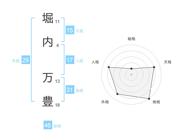 堀内 万豊さんの総格は46画の1点!