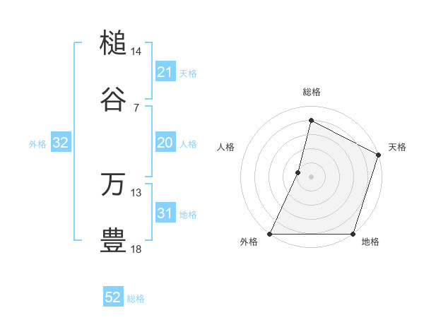槌谷 万豊さんの総格は52画の4点!