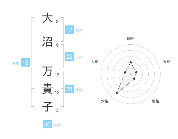 大沼 万貴子さんの外格は18画の4点!