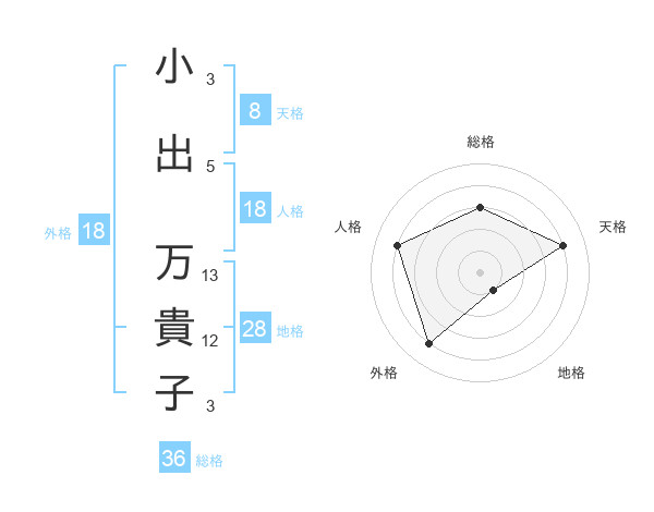 小出 万貴子さんを姓名の画数から五運を鑑定