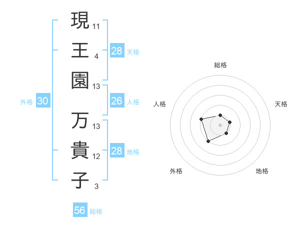 現王園 万貴子さんを姓名の画数から五運を鑑定